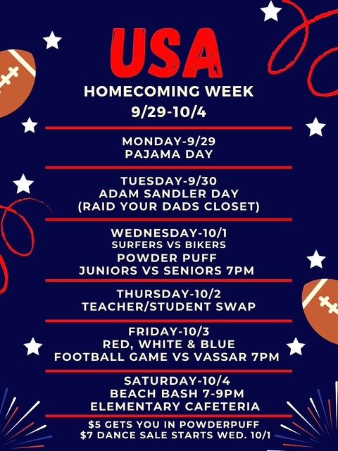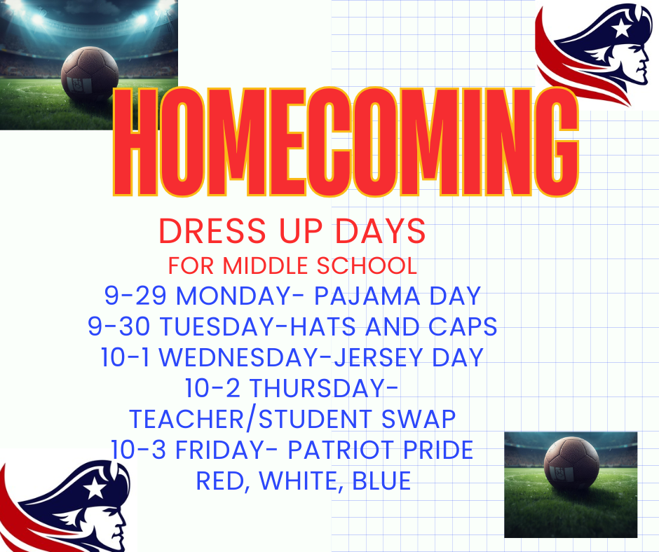 Homecoming week is here! Check out the images below for information about Powder Puff, and our spirit day themes for middle school and high school.